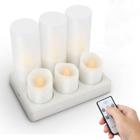 เทียนไร้เปลวไฟพร้อมเทียน Led ชาร์จได้,ไฟกระพริบชาพร้อมตัวจับเวลา