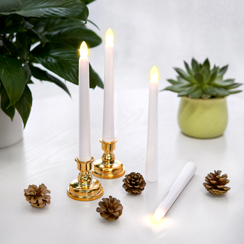 Flameless White LED Taper Candles with Gold Removable Candle Holders